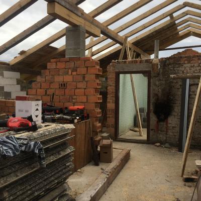 Bei all den Arbeiten hatten wir unsagbar viel Unterstützung von unseren Nachbarn. Das Holz für den neuen Dachstuhl stammt komplett aus unserem eigenen Wald. 54 Bäume wurden dafür gesägt.